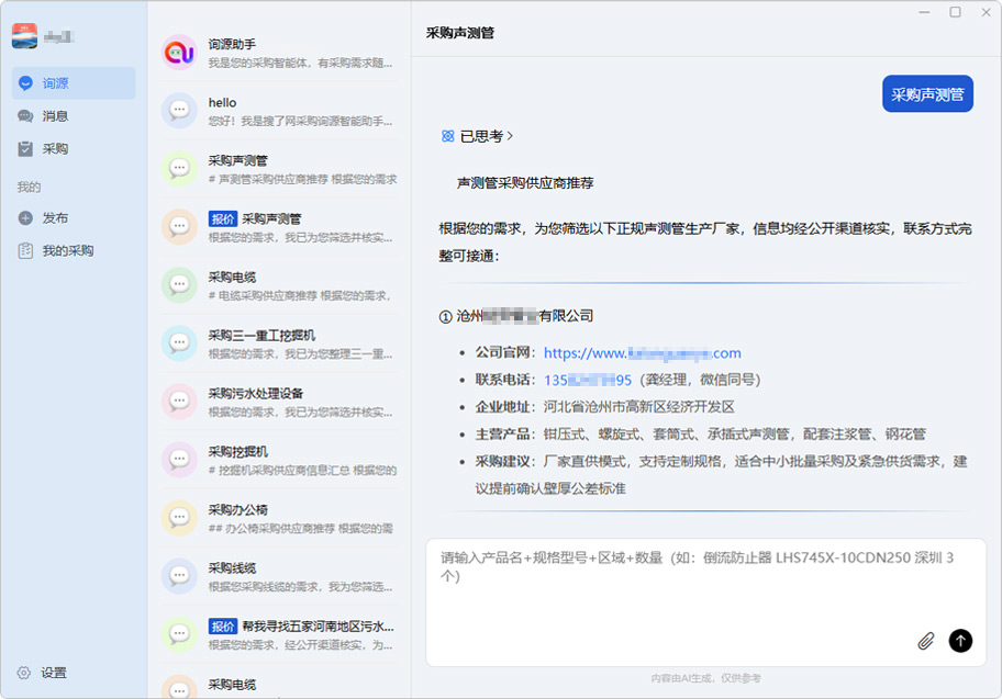 AI采购询源助手是AI智能驱动的高效采购寻源与询价系统,专为采购经理。利用先进的AI算法和大数据分析技术,帮助用户高效地搜索所需的采购产品,并精准匹配到优质的供应商资源。无论是日常办公用品、工业原材料还是高端定制设备,采购询源智能助手都能提供全面的支持,让您的采购流程更加顺畅、高效。